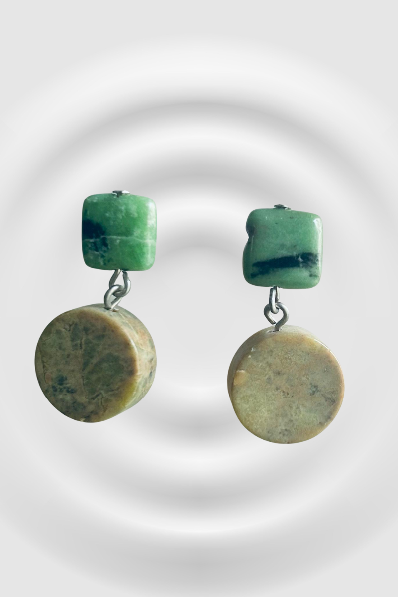 El Pendiente de Piedra Natural presenta una fusión perfecta entre la elegancia de su diseño y la naturaleza de las piedras. El turquesa verde, el rubí y la zoisita se combinan armoniosamente para crear un efecto visual cautivador, que refleja la diversidad y la belleza del mundo natural.