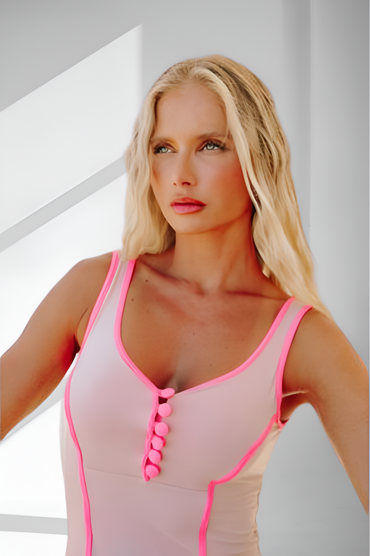 con maravillosos detalles al bies en Rosa, se puede llevar como body o bañador, sin relleno, escote espalda hasta media espalda.